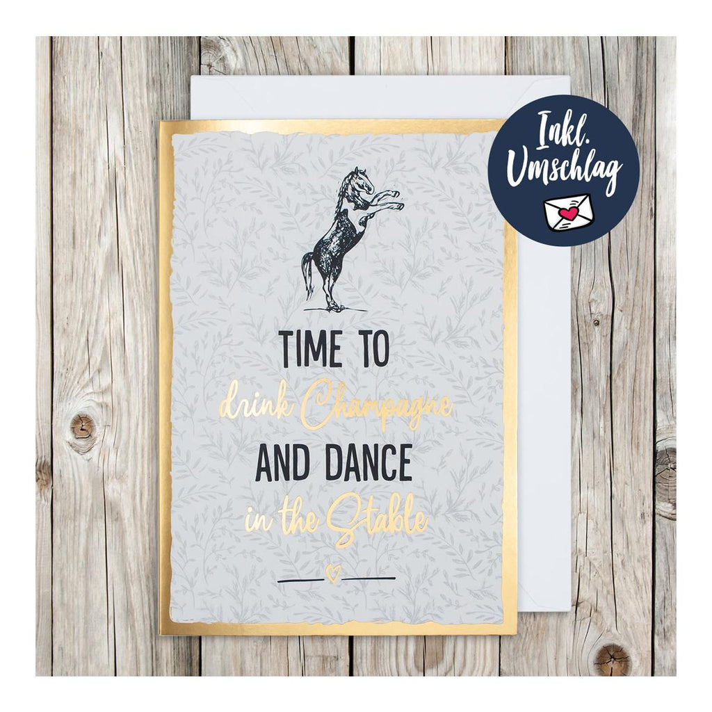 Machen Sie besonderen Anlässen eine Freude mit der eleganten Grußkarte "Champagne" – ein stilvolles Accessoire für Pferdeliebhaber.